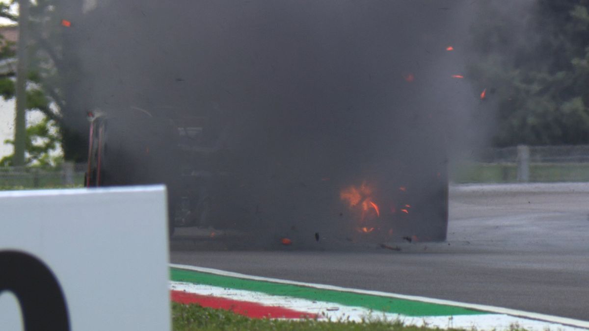 Debris scatters across the track as Alex Albon's rear brakes overheat. He's limped back to the pits and the fire is out. #ImolaGP #F1 pic.twitter.com/WujhKc6pp9
