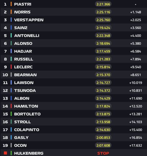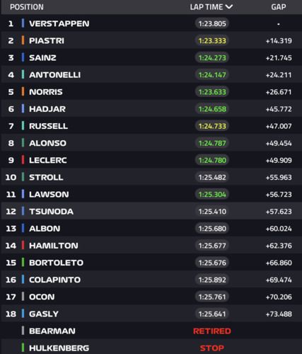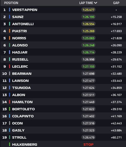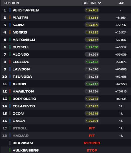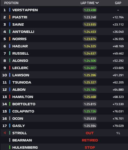 | 7 | Andrea Kimi Antonelli | Włochy | Mercedes | 150 |