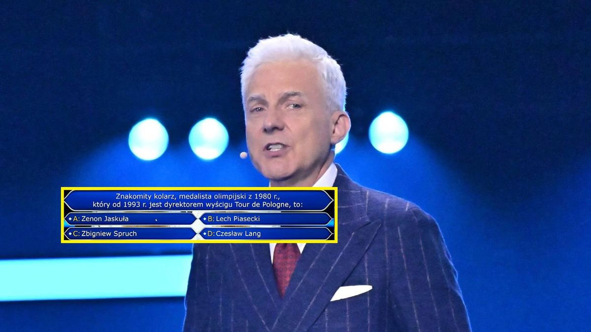 "Znakomity kolarz, medalista olimpijski z 1980 r., który od 1993 r. jest dyrektorem Tour de Pologne, to:" - tak brzmiało pytanie. Na tablicy pojawiły się cztery nazwiska: Zenon Jaskuła, Lech Piasecki, Zbigniew Spruch i Czesław Lang.