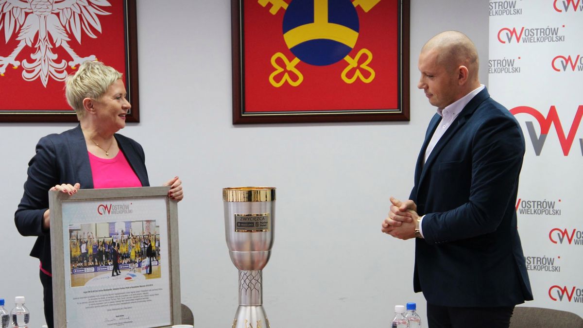- Wasza wizyta wiele dla mnie znaczy, to wielki zaszczyt i honor. Siedziałam przed telewizorem, bardzo się denerwowałam. Trzymałam za was kciuki. Bardzo dziękuję wam za reprezentowanie miasta Ostrów Wielkopolski w tak wspaniały sposób - mówiła Beata Klimek, która wręczyła w ręce prezesów Pawła Matuszewskiego i Marcina Napierały oprawione zdjęcie, upamiętniające sukces drużyny w Pucharze Polski. Michał Chyliński przekazał pani prezydent symboliczny medal i podziękował w imieniu klubu za okazane dotychczas wsparcie.