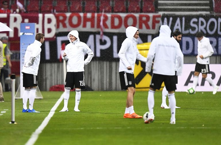 Silne opady deszczu storpedowały zaplanowaną na sobotę grę wewnętrzną kadrowiczów Adama Nawałki w Arłamowie. Warunki atmosferyczne dały się także we znaki piłkarzom Austrii i Niemiec. Przed godz. 18.00 nad stadionem w Klagenfurcie przeszła ulewa, przez moment padał grad. Manuel Neuer na rozgrzewce przemókł do suchej nitki. Sędzia Pavel Kralovec z Czech odesłał obie ekipy do szatni. Ostatecznie pierwszy gwizdek zabrzmiał o godz. 19.43. Zobacz zdjęcia z Klagenfurtu.