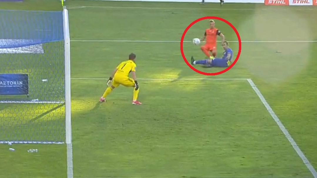 Na prawej stronie boiska bardzo dużo miejsca miał Kacper Chodyna. Młody zawodnik otrzymał podanie od kolegi, po czym zdecydował się na płaskie dośrodkowanie w pole karne. Na jego drodze stanął Jon Aurtenetxe, który próbował interweniować i niefortunnie zmienił tor lotu piłki.