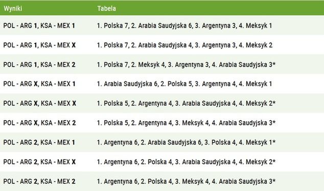 Kluczem wtedy będzie to, żeby Saudyjczycy nie wygrali z Meksykanami. Jeżeli tak się stanie, a Argentyna okaże się lepsza od Polski, podopieczni Czesława Michniewicza z czterema punktami polecą do domu.