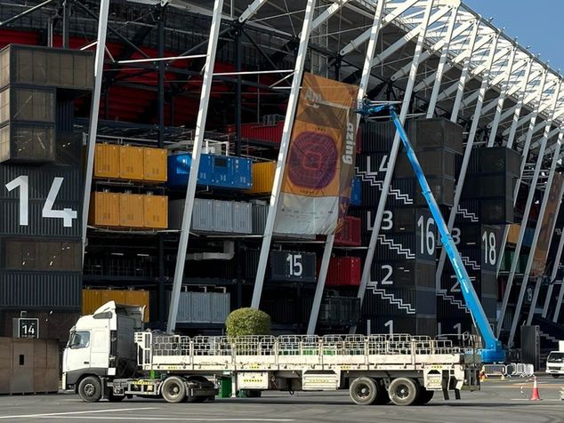 W miejscu, w którym kibice Albicelestes skakali rozśpiewani z flagami Diego Maradony i Leo Messiego, polscy fani przebierali się za świętego Mikołaja, a Meksykanie tańczyli w sombrerach, jest dziś pusto. Też słychać lekki gwar, ale melodia nie jest już tak radosna. Zza aluminiowej siatki zakrytej materiałem słychać tylko sapanie ciężarówek, stukot młotków i warkot wiertarek.