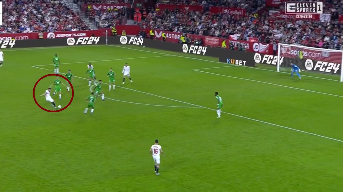 Już siedem minut później Sevilla doprowadziła do remisu. A wszystko za sprawą Ivana Rakiticia, który mimo 35 lat na karku wciąż ma to coś. Były zawodnik FC Barcelony huknął jak z armaty z dalszej odległości.