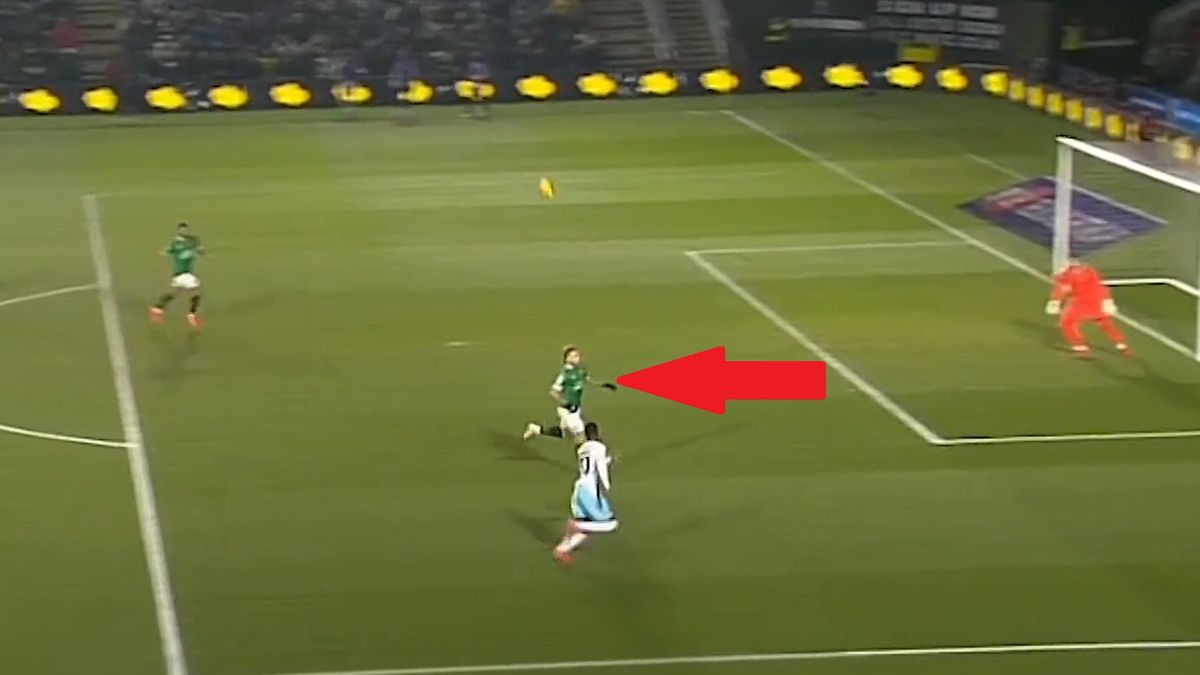 W 31. minucie gościom przyznano rzut wolny, który został rozegrany od razu. Futbolówka została zaadresowana do Jaidona Anthony'ego, a ten później dograł ją w pole karne do zdobywcy gola Ziana Flemminga. W stronę Anthony'ego ruszył Puchacz, lecz stracił orientację i ostatecznie nie przeszkodził rywalowi w dograniu piłki.