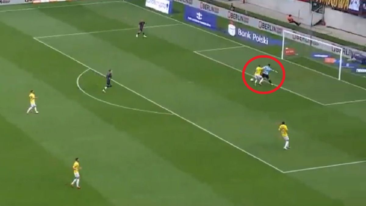 Rumuński golkiper w kompletnie niegroźnej sytuacji zachował się koszmarnie we własnym polu karnym. Miał czas i miejsce, by wybić piłkę, podać do kolegi. On jednak zwlekał.