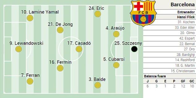 "Ważnym pytaniem jest, kto będzie środkowym napastnikiem: Robert Lewandowski jest zdecydowanym faworytem (...). Warto pamiętać, że polski napastnik, mimo tak długiej przerwy, jest na początku sezonu drugim najlepszym strzelcem zespołu w La Lidze, z czterema golami na koncie, z jednym tylko mniej niż Ferran Torres, który jest liderem tabeli z pięcioma golami" - dodano.