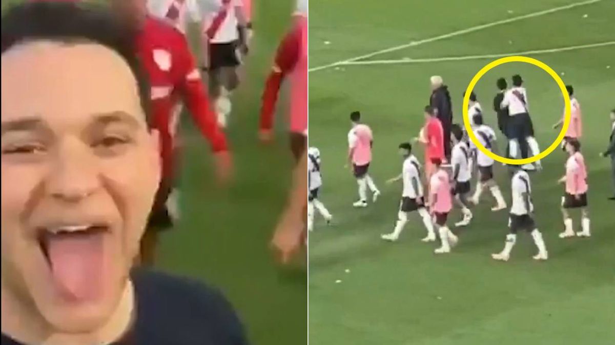 W trakcie nagrywania materiału zauważył zbliżających się zawodników River Plate. Wpadł na pomysł zrobienia uśmiechniętej miny, czym zapewne chciał upokorzyć pokonany zespół.