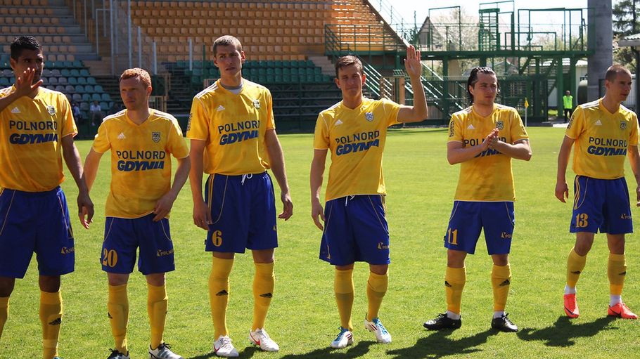 Od samego początku dominowali gdynianie. Już w 11. minucie po bezbłędnym dośrodkowaniu Wachowicza, piłkę w bramce umieścił Łukasz Kowalski, pokonując trafiając strzałem głową. Po kilku minutach, a dokładnie w 18. minucie kolejną, niecodzienną bramkę zaliczył Marcin Wachowicz, który wybijając piłkę z rzutu rożnego skierował ją bezpośrednio do bramki Orkana.