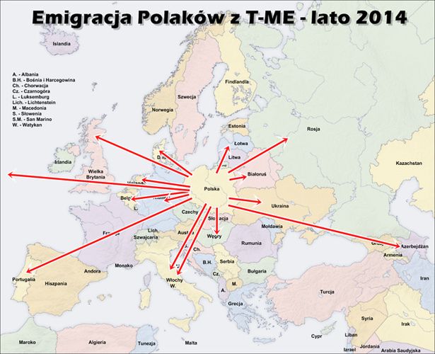 Emigracja Polaków z T-ME - lato 2014: