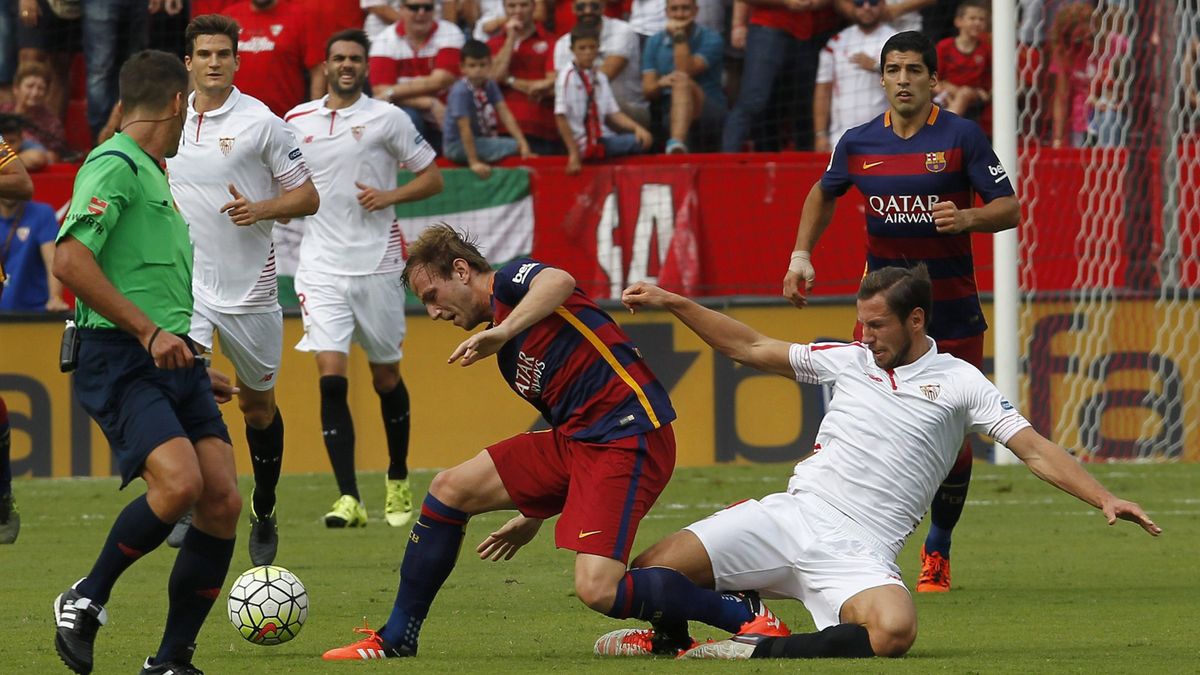 Sevilli sprzyjało za to szczęście we własnym polu karnym. W 23. minucie po rzucie wolnym Neymar trafił w słupek, piłka toczyła się po linii bramkowej i w ostatniej chwili wybił ją Coke. Do dobitki dopadł jeszcze Luis Suarez, jednak również trafił w konstrukcję bramki. Urugwajczyk był jeszcze raz o centymetry od bramki - jego techniczny strzał zatrzymał się jednak na poprzeczce.