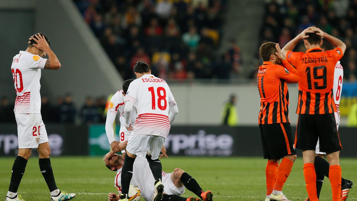 W 70. minucie Duńczyk, który wszedł na boisko raptem jedenaście minut wcześniej, ucierpiał w starciu z Facundo Ferreyrą, ale Urugwajczyk nie spowodował bezpośrednio kontuzji pomocnika Sevilli, którego kolano przy upadku przybrało nienaturalny kształt. Na jego widok piłkarze obu drużyn łapali się za głowę i odwracali wzrok, ale sędzia Szymon Marciniak zachował zimną krew i od razu wezwał na boisko lekarzy. Kilka minut później Duńczyk opuścił plac gry na noszach przy brawach zgromadzonej we Lwowie publiczności.