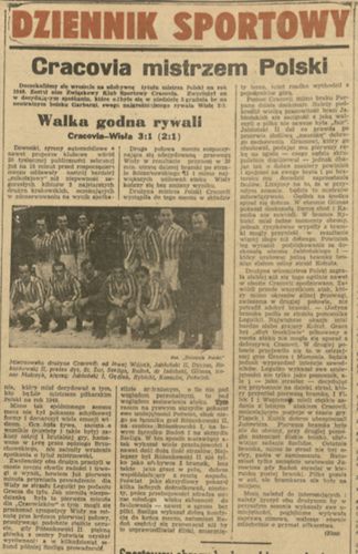 Cracovia: Henryk Rybicki - Kazimierz Kaszuba, Władysław Gędłek - Tadeusz Glimas, Edward Jabłoński, Marian Jabłoński - Ludwik Poświat, Stanisław Różankowski, Eugeniusz Różankowski, Julian Radoń, Czeław Szeliga.