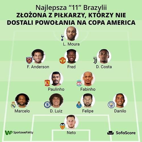 Jedenastka największych nieobecnych w kadrze Brazylii (grafika SofaScore)