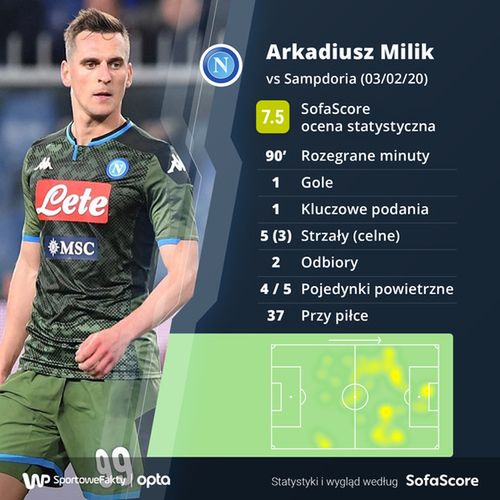 Praktycznie nie trzeba było czekać na mocne polskie akcenty. W 3. minucie Arkadiusz Milik strzelił ósmego gola w sezonie Serie A po trzeciej w rozgrywkach asyście Piotra Zielińskiego. Napastnik Napoli uciekł obrońcom Sampdorii i główkował na 1:0 po dośrodkowaniu z lewego skrzydła. Niecodzienna była sceneria tego gola, ponieważ trzy metry od Milika płonęła raca, ale zdekoncentrowała co najwyżej gospodarzy. Z kolei Zieliński właśnie dogonił pod względem liczb Linettego.