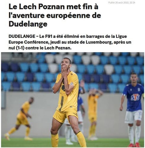 "Lech Poznań kończy europejską przygodę Dudelange" - informuje lessentiel.lu.