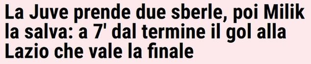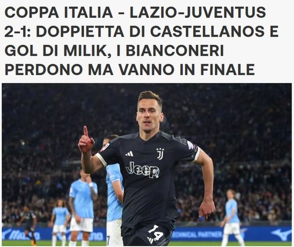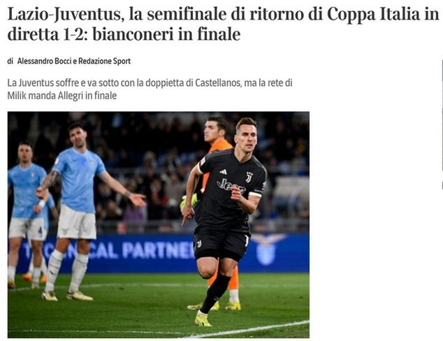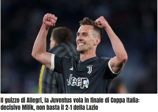 "Błysk Allegriego, Juventus leci do finału Pucharu Włoch. Milik decyduje, 2:1 Lazio to za mało" - napisano w serwisie calciomercato.com.