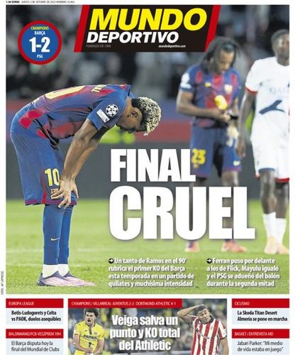 Czwartkowe wydanie hiszpańskiej gazety Mundo Deportivo zostało zatytułowane jako "okrutny koniec" meczu FC Barcelony wraz ze zdjęciem Lamine'a Yamala. Dziennikarze podkreślają, że był to mecz pełen jakości, a Paris Saint-Germain jako pierwsze wygrało w tym sezonie z Dumą Katalonii.