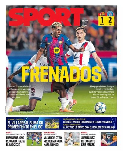 Kolejna gazeta, czyli Sport, podsumowała środowy mecz w Barcelonie jednym słowem - zatrzymani. Dziennikarze zauważyli, że mimo otwarcia wyniku przez gospodarzy, później to goście przejęli inicjatywę i dokonali "remontady".