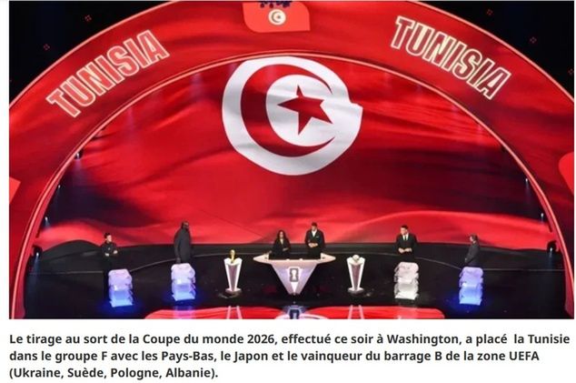 "Losowanie grup mistrzostw świata 2026, przeprowadzone dziś wieczorem w Waszyngtonie, umieściło Tunezję w grupie F wraz z Holandią, Japonią oraz zwycięzcą barażu B strefy UEFA (Ukraina, Szwecja, Polska lub Albania)" - przekazał serwis tunezyjskiego radia Mosaique FM.