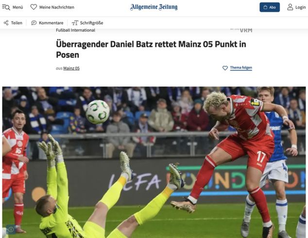 "Dzięki świetnemu występowi bramkarza Daniela Batza, Mainz 05 wywozi zasłużony punkt z Poznania, mimo gry w osłabieniu przez pół godziny i kontrowersyjnych decyzji sędziego" - pisze Allgemeine Zeitung. Dziennik określa spotkanie jako "mecz nie dla ludzi o słabych nerwach, ale pokazujący potencjał drużyny".