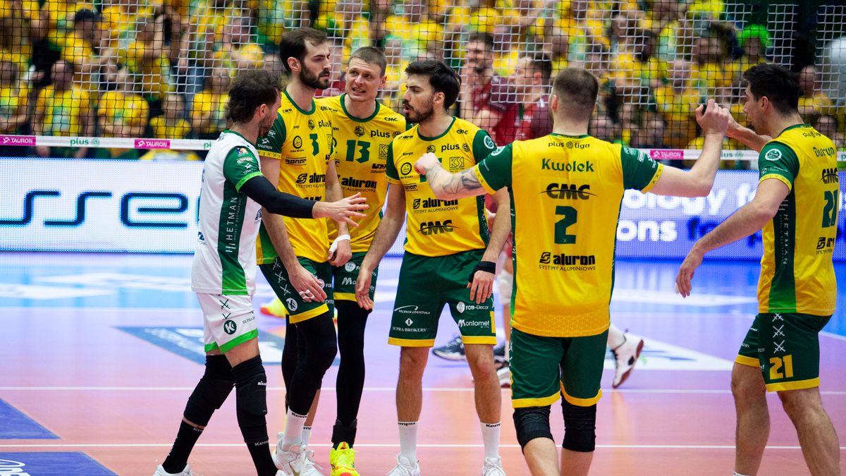 Aluron CMC Warta: Tavares, Butryn, Zniszczoł, Bieniek, Russel, Kwolek, Perry (libero) oraz Nasri;