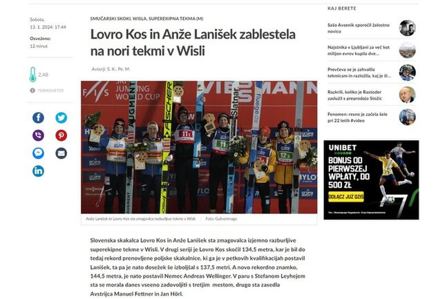 "Lovro Kos i Anze Lanisek zabłysnęli w szalonych zawodach w Wiśle" - czytamy w serwisie siol.net.