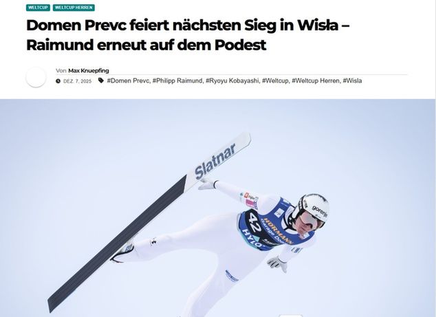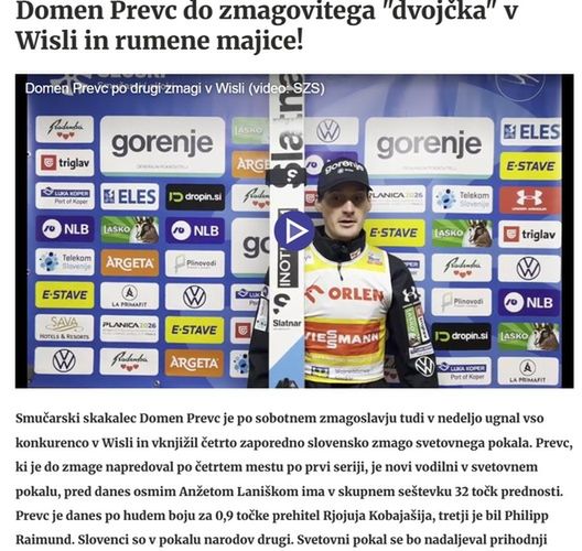 "Słoweńscy skoczkowie narciarscy błyszczą w ostatnich dniach. Praktycznie nie ma zawodów, zarówno wśród kobiet, jak i mężczyzn, bez miejsca na podium. Domen Prevc przedłużył dziś w Wiśle wymarzoną serię słoweńskich zwycięstw do czterech" - czytamy.