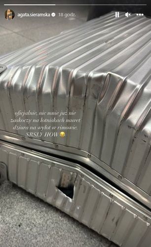 "Oficjalnie, nic mnie już nie zaskoczy na lotniskach. Nawet dziura na wylot w Rimowie" - napisała Sieramska na InstaStory. Rimowa to marka walizek. Niestety, obsługa lotniska na pewno nie obchodziła się z nią w sposób delikatny.