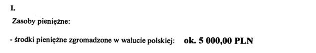 W zakładce "środki pieniężne zgromadzone w walucie polskiej" Papke wpisał kwotę zaledwie 5 tysięcy złotych. Dużo wyższe sumy można było zobaczyć przy wartościach domu, czy też działki budowlanej.