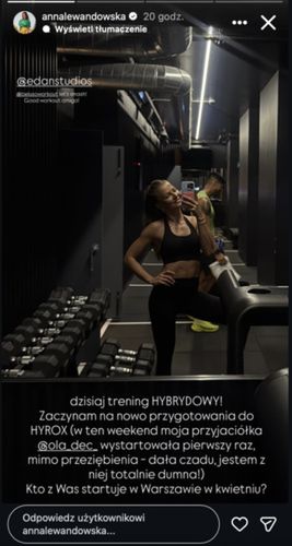 Teraz w sportowe wyzwanie wciągnęła także swoją przyjaciółkę, Olę Dec, która niedawno zadebiutowała w zawodach - mimo przeziębienia. "Dała czadu, jestem z niej totalnie dumna!" - napisała Lewandowska w relacji na Instagramie. Obie panie trenują razem, a w ostatnich dniach rozpoczęły cykl treningów hybrydowych w Edan Studios, czyli klubie należącym do Anny Lewandowskiej.