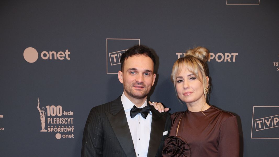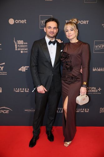 Żużlowiec miał na sobie elegancki, czarny garnitur. Natomiast jego żona postawiła na długą, dopasowaną sukienkę w modnym w tym sezonie odcieniu czekoladowego brązu. Kreację wyróżniały trzy efektowne kwiaty z tego samego materiału, co suknia.