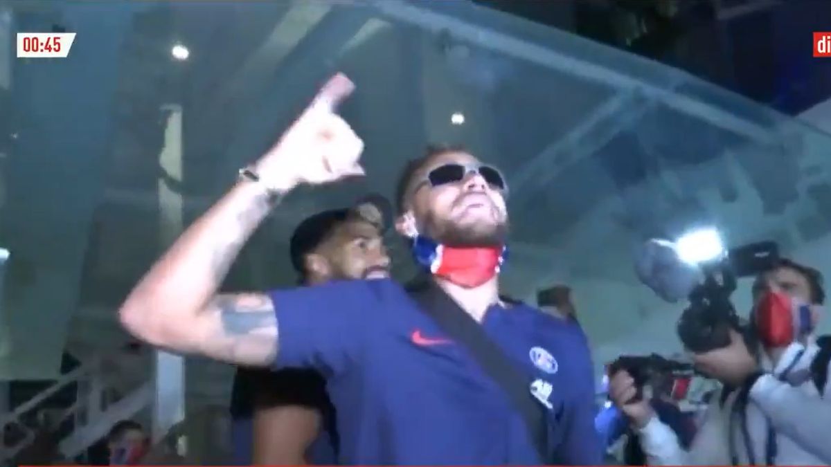L'arrivée des joueurs du PSG à leur hôtel de Lisbonne dans @lequipedusoir avec Neymar en maître de cérémonie !#psg #liguedeschampions#lequipeFOOT pic.twitter.com/IrRTH8MGIo