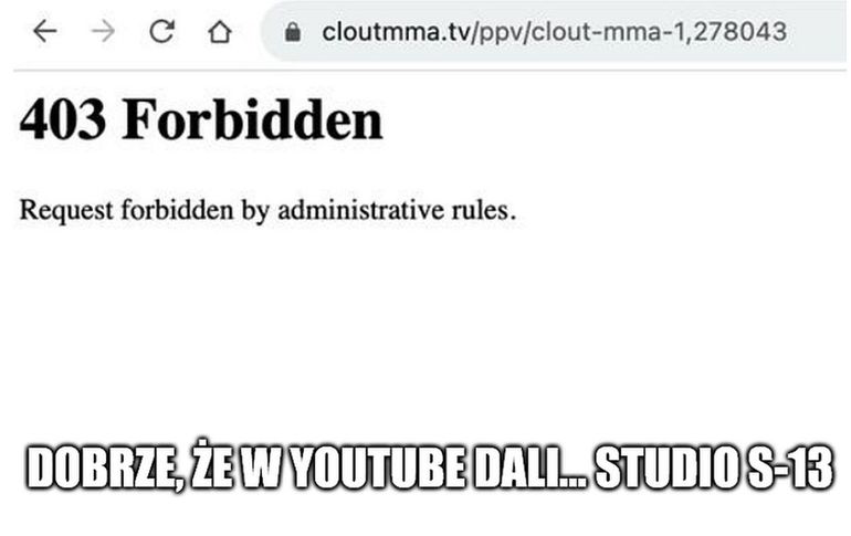 Pierwsza gala Clout MMA, która w sobotę odbyła się w Warszawie, zakończyła się jednym wielkim skandalem. Serwery nie wytrzymały i fani nie mogli kupić PPV. A ci, którzy wykupili dostęp wcześniej, stracili tylko pieniądze. Fani w memach wspomnieli kultowe studio radiowe S-13. Audio z gali Clout (bez obrazu) było bowiem dostępne w serwisie YouTube.