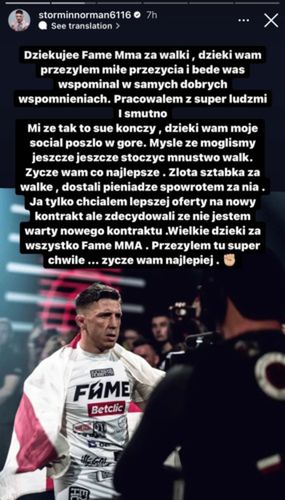 W czwartek do tych zarzutów ustosunkował się sam zainteresowany. Norman Parke zmieścił wpis w języku polskim, w którym pożegnał się z Fame MMA oraz próbował się wytłumaczyć.