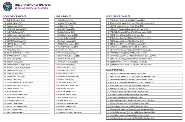 Aby ustalić numery rozstawienia w Wimbledonie 2022, organizatorzy posłużyli się najnowszymi notowaniami rankingów. Iga Świątek jest liderką klasyfikacji WTA, dlatego na kortach trawiastych przy Church Road wystąpi z "jedynką". Tym samym 21-latka z Raszyna zapisze się w historii. Będzie bowiem pierwszym reprezentantem Polski, który w zmaganiach singlowych został najwyżej rozstawiony.