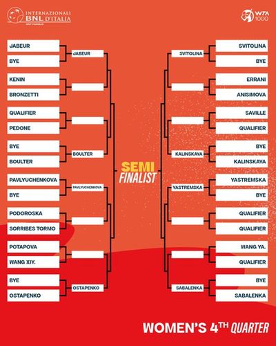 Podobnie jak w Madrycie, do dolnej połówki turniejowej drabinki trafiły Aryna Sabalenka i Jelena Rybakina. Białorusinka i Kazaszka znów mogą się zmierzyć na etapie półfinału. W ćwiartce aktualnej wiceliderki rankingu WTA ulokowane zostały m.in. Tunezyjka Ons Jabeur, Łotyszka Jelena Ostapenko i Ukrainka Elina Switolina.