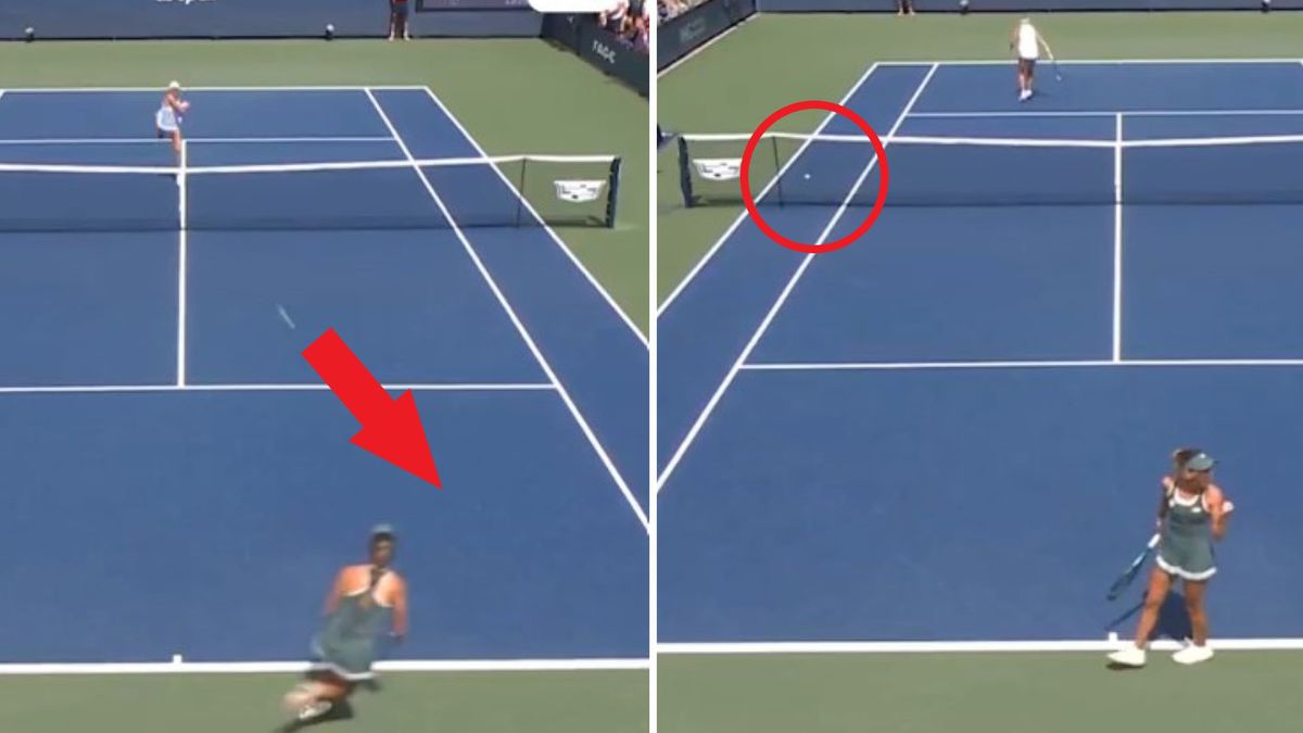 Linette, zaskoczona obrotem sytuacji, zagrała piłkę w siatkę, co przyniosło Amerykance punkt i gromkie brawa od publiczności (patrz wideo poniżej).
