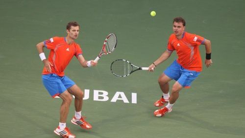 Wieczorem grający po raz trzeci w półfinale (2008, 2010) o pierwszy finał powalczą Fyrstenberg i Matkowski. Polacy to jedyny debel w stawce, który do Masters awansował nie wygrywając w tym sezonie turnieju. Za to na przełomie sierpnia i września w US Open zaliczyli swój pierwszy wielkoszlemowy finał (to ich jedyny finał w sezonie), grali też w półfinale Masters 1000 w Monte Carlo i Szanghaju oraz w ćwierćfinale Australian Open i w Masters 1000 w Paryżu-Bercy. Mariusz i Marcin w imprezie wieńczącej sezon grają po raz piąty w ostatnich sześciu latach (zabrakło ich jedynie w 2007), bilans ich spotkań w tej imprezie to 8-9. Fazę grupową zakończyli oni z bilansem 2-1 (pokonali Michaëla Llodrę i Zimonjicia oraz Rohana Bopannę i Aisama-Ul-Haq Qureshiego, przegrali z Mirnym i Nestorem). Bhupathi i Paes fazę grupową również zakończyli z jedną porażką (w pierwszym meczu ulegli Lindstedtowi i Tecău, by następnie bez straty seta pokonać Melzera i Petzschnera oraz Bryanów). "Indyjski ekspres" wrócił na tory po blisko 10 latach przerwy i powalczy o czwarty finał (1997, 1999, 2000), lecz w przyszłym roku ponownie zawiesi działanie (partnerem Bhupathiego będzie Bopanna). Obaj osiągnęli jeszcze po jednym finale z innymi partnerami i także je przegrali (Bhupathi wspólnie z Mirnym - 2009, Paes z Zimonjiciem - 2005). Hindusi sezon rozpoczęli od mocnego akcentu: wygrali turniej w Chennai oraz dotarli do finału Australian Open osiągając pierwszy wspólny wielkoszlemowy finał od czasu Rolanda Garrosa 2001. Później sięgnęli jeszcze po tytuł w Miami i Cincinnati, a bilans ich tegorocznych finałów to 3-2. Mehesh i Leander mają w tym sezonie imponujący bilans granych do 10 punktów meczowych tie breaków (10-3) oraz decydujących setów (15-3). Będzie to drugi mecz obu par, Fyrstenberg i Matkowski pokonali Bhupathiego i Paesa w drodze do finału US Open 6:4, 7:6(4).