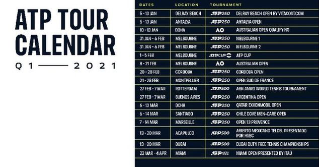 Dwa tygodnie temu ATP ogłosiło plany rozpoczęcia rywalizacji w 2021 roku. Kalendarz zawierał wykaz turniejów na pierwsze siedem tygodni sezonu. Jego najważniejszym elementem było uregulowanie sytuacji związanej z rozgrywaniem Australian Open. Wielkoszlemowa impreza w Melbourne ma się odbyć w dniach 8-21 lutego (więcej tutaj).