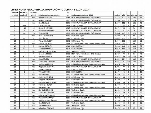 Pełna klasyfikacja zawodników za sezon 2014: